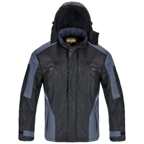 Kurtka wykonana w 100% z trwałego poliestru, ocieplana od wewnątrz polarem, zasuwana na zamek błyskawiczny osłonięty zapinaną listwą na rzepy. Posiada dwie kieszenie na klatce piersiowej oraz dwie kieszenie dolne zapinane na zamek błyskawiczny i osłonięte klapami, a także małą kieszeń od strony wewnętrznej zapinaną na rzep. Rękawy zapinane na rzep z możliwością regulacji. Odsuwany kaptur ocieplany polarem, ściągany za pomocą troczków, posiada dodatkowe zapięcie na rzep dzięki czemu głowa jest lepiej chroniona przed zimnem i warunkami atmosferycznymi. Dół kurtki z regulacją obwodu. Rozmiary: S – XXXL.