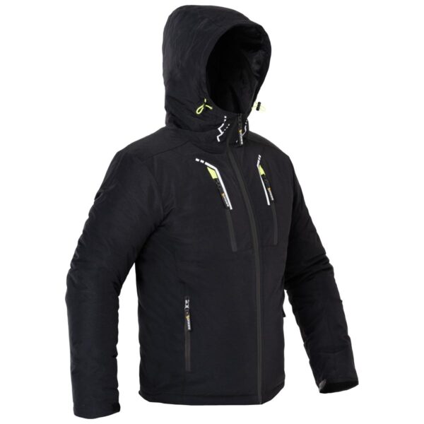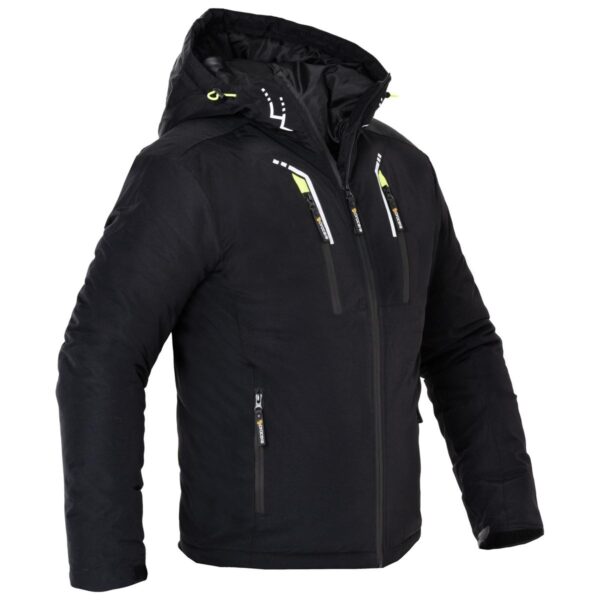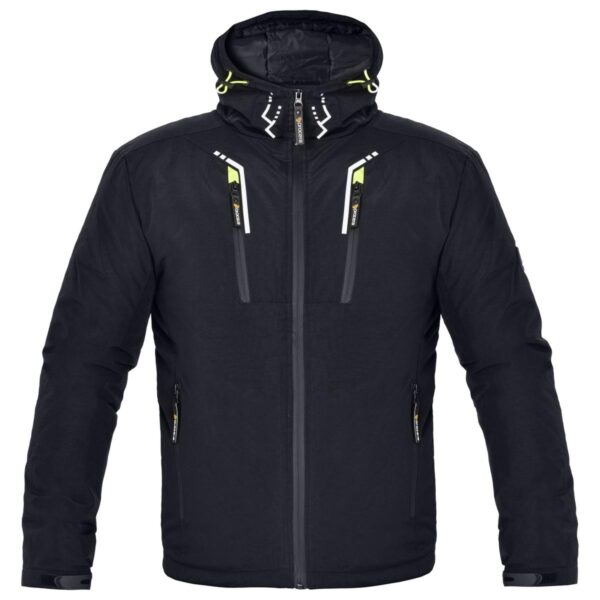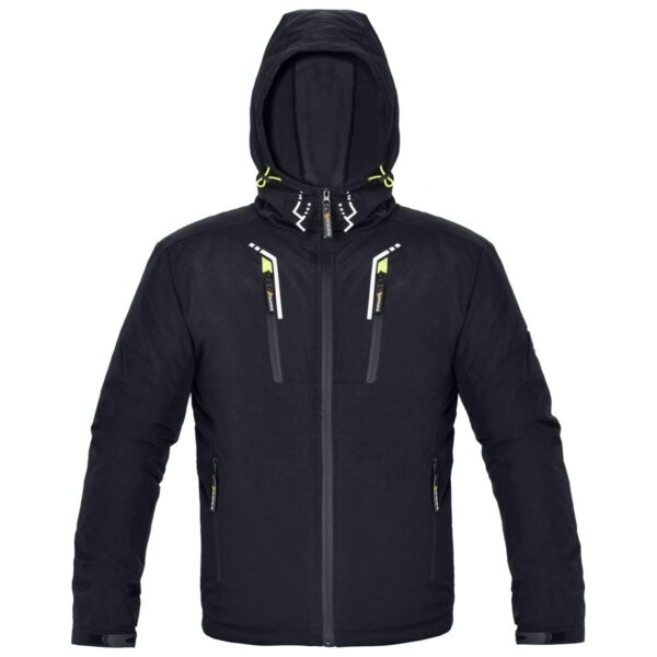 Kurtka ocieplana wykonana w 100% z trwałego poliestru, zasuwana na zamek błyskawiczny. Posiada dwie kieszenie na klatce piersiowej oraz dwie kieszenie dolne zapinane na zamek błyskawiczny, a także małą kieszeń od strony wewnętrznej. Rękawy zapinane na rzep z możliwością regulacji. Ocieplany kaptur ściągany za pomocą troczków. Rozmiary: S – XXL.