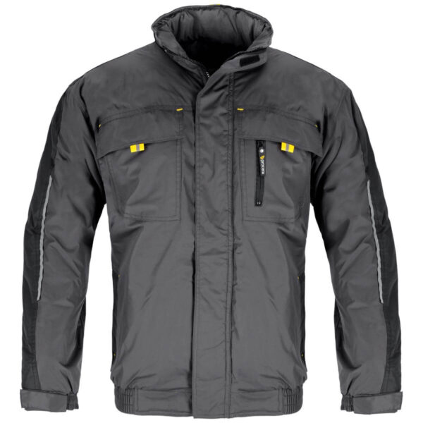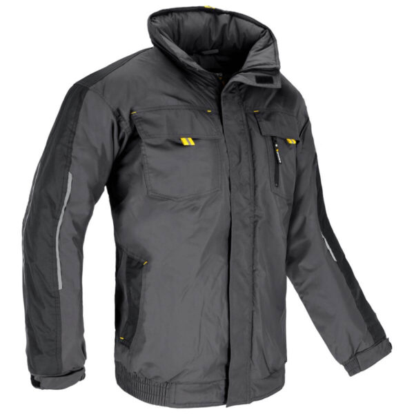 Kurtka ocieplana z poliestrową podszewką oraz warstwą zewnętrzną wykonaną w 100% z impregnowanego poliestru. Zasuwana na zamek błyskawiczny osłonięty listwą na rzepy. Posiada trzy kieszenie na klatce piersiowej – w tym dwie osłonięte klapami na rzep i jedną zasuwaną na zamek błyskawiczny, dwie kieszenie dolne, a także dwie kieszenie od strony wewnętrznej – w tym jedna kieszonka na akcesoria. Rękawy ze ściągaczami z dodatkowym zapięciem na rzep zwiększają komfort jednocześnie poprawiając izolację termiczną. Dół kurtki z dopasowującymi ściągaczami dzięki czemu zapewniona jest dodatkowa ochrona przed wiatrem i chłodem. Kolor: czarny. Rozmiary: S- XXL