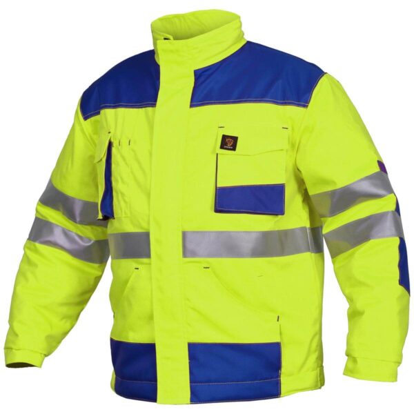 Kurtka PROMAN wykonana z tkaniny 65 % poliester / 35 % bawełny o gramaturze 260 g/m² + ocieplina. Zasuwana na zamek błyskawiczny, osłonięty listwą na rzepy. Dwie kieszenie na klatce piersiowej w tym jedna kieszeń na smartphone i dwie małe długie kieszonki np. na ołówki, po drugiej stronie kieszeń zapinana na rzep oraz dwie dolne kieszenie. Mankiety zapinane na guziki. Rygle wzmacniające i podwójne szwy zwiększające wytrzymałość. Wzmocnienia typu OXFORD. Wyprodukowano w Polsce. Rozmiary: 46 – 62. Dostępne w kolorach: szary, żółty oraz pomarańczowy. Możliwość skompletowania pełnej OCIEPLANEJ odzieży roboczej PROMAN: kurtka + spodnie. (UE) 2016/425. Kategoria I – tylko do minimalnych zagrożeń.